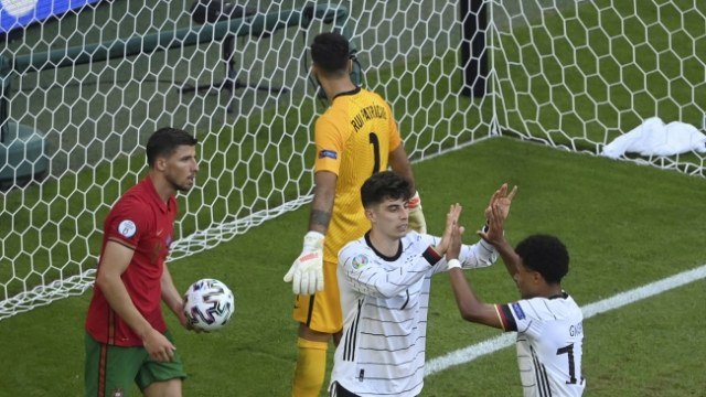 Fudbalska reprezentacija Nemačke pobedila je danas u Minhenu Portugal sa 4:2, u utakmici drugog kola Grupe F na Evropskom prvenstvu.Nemačka je postigla gol u petom minutu, ali je posle upotrebe VAR tehnologije pogodak Rubena Gosensa poništen zbog ofsajda u kome se tokom akcije našao Serž Gnabri.