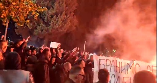 Na putu ka zgradi vlade, demonstranti su takođe skandirali "Turci napolje" i palili su pirotehniku, dok su pojedini istakli trobojke.