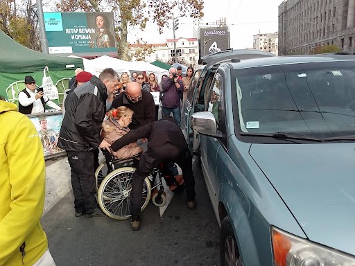 Od njenog šatora u kojem je kod Doma Narodne skupštine u centru Beograda, do automobila su je u invalidskim kolicima dogurali veterani koji su sa njom od kad je pre četrnaest dana počela štrajk glađu.