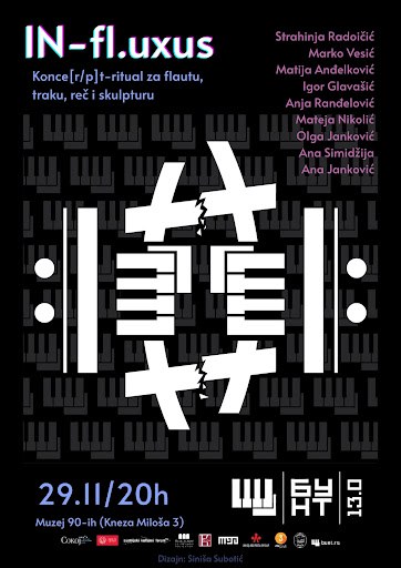 IN-fl.uxus konce[r/p]t za flautu, traku, reč i skulpturu je "susret sa nečim što je istovremeno intimno i udaljeno, arhaično i savremeno, krhko i moćno. Ovaj koncept se nadovezuje na arhetipske rituale prelaska, ali i na savremeno iskustvo zajedništva, unutrašnjih lomova i otpora koje smo kao društvo živeli poslednjih godina", dodaje se u saopštenju.