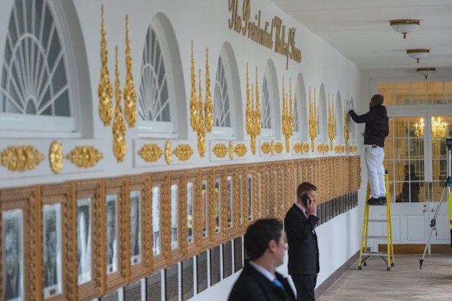 Guverner Kalifornije Gevin Njusom koji često ismeva Trampa na internetu, osudio je novu dekoraciju u Beloj kući i na platformi Iks kao predlog za buduću tablu o Trampu napisao: "Inflacija raste. Nezaposlenost raste. Cene namirnica rastu. Troškovi struje rastu. A Donald Tramp provodi vreme radeći ove gluposti".