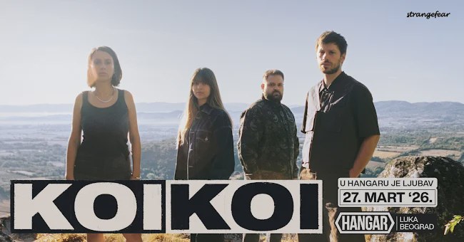 Beogradski indi bend KOIKOI nastupiće u Hangaru Luke Beograd u petak, 27. marta na koncertu pod sloganom "U Hangaru je ljubav", saopštili su danas organizatori.