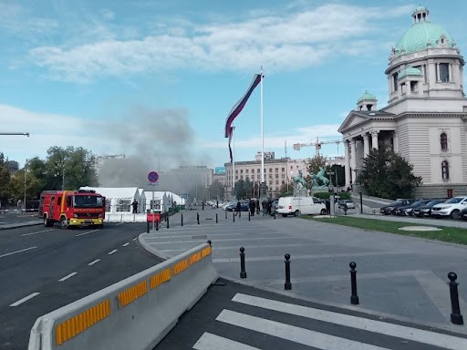 Oružani incident i požar u šatorskom kampu ispred Skupštine Srbije, koje su podigle pristalice vlasti, podstakao je tenzije u zemlji uoči očekivanih masovnih demonstracija protiv predsednika Aleksandra Vučića 1. novembra, piše Njujork tajms.