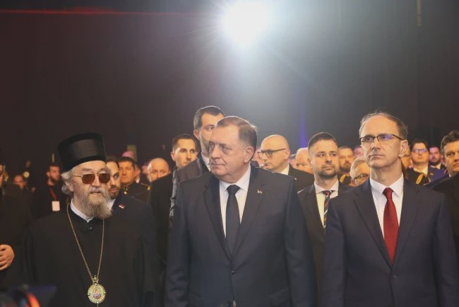 Policijski orkestar Ministarstva unutrašnjih poslova Republike Srpske je na počektu izveo himne Srpske i Srbije "Moja Republika" i "Bože pravde".