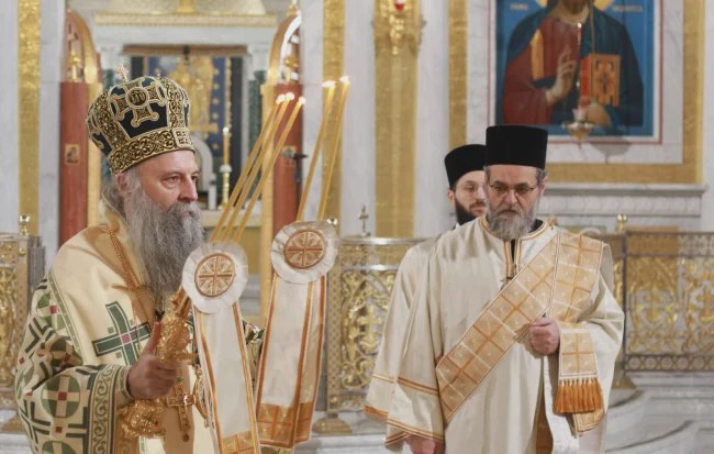 Patrijarh Srpske pravoslavne crkve (SPC) Porfirije je danas služio u hramu Svetog Save u beogradskoj opštini Vračar, povodom istoimenog verskog praznika.