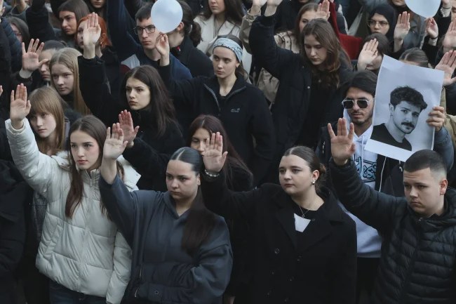 Nosili su i brojne transparentne, među kojima i one na kojima je ispisano: "Ko je odgovoran?", "Čiji potpis je poveo u smrt?", "Smrt nije ničiji politički poen! Sjašite!", "Linija odgovornosti postoji, zašto nije povučena?", "Kolege, gde ste?", "Omladina gine, džepovi se pune" i druge.