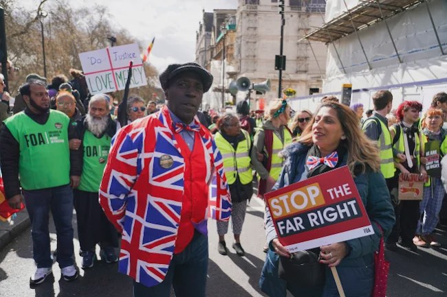 Skup i šetnja koja je usledila, bili su organizovani na poziv organizacije "Zajedno savez" (Together Alliance), koalicije koja uključuje međunarodnu nevladinu organizaciju za ljudska prava Amnesti internešenel (Amnesty International), sindikat Ujedinjeni (Unite) i antirasističku organizaciju "Ustani protiv rasizma" (Stand Up to Racism).